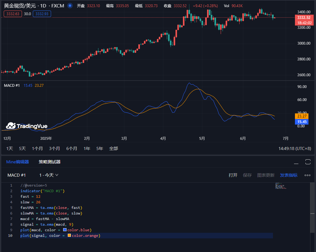 我们现在将创建我们的第一个可运行的 Mine 脚本,即Mine Script 中MACD指标的实现 :