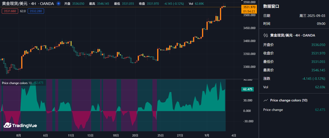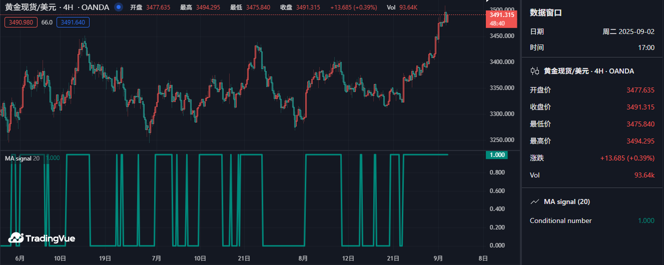 - barcolor() 函数始终为主图表K线着色,无论脚本是否位于其他图表窗格中,且仅当K线可见时图表才会显示结果。